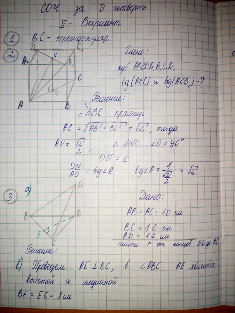 3. Отрезок AD перпендикулярен к плоскости равнобедренного