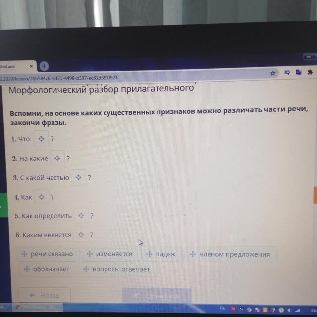 Вспомни на основе каких существительных признаков можно различать части речи закончи фразы