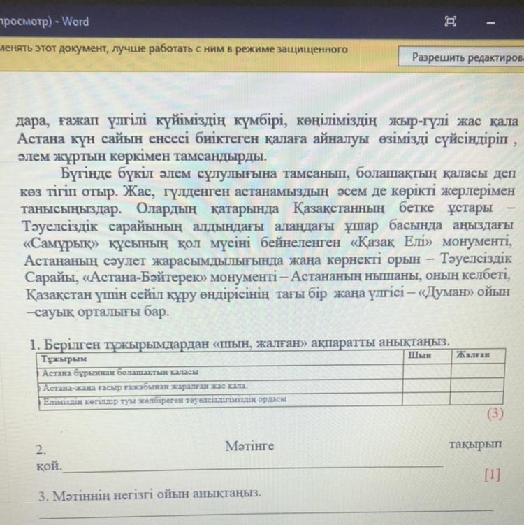 Мәтіннің негізгі ойы Қазақстанның астанасы Астана Өйткені бұл мәтінде Қазақстанның астанасы туралы айтылған көрікті жерлері туралы