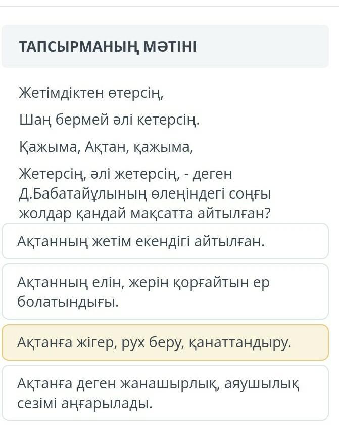 Ответ: Ақтанға жігер , рух , беру , қанаттандыру