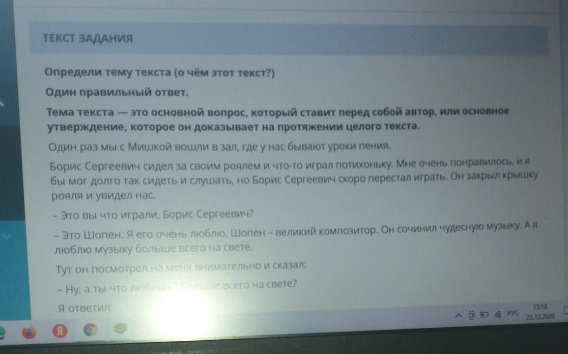 мои вопросы видела определите тему текста о чём этот текст один правильный ответ нема текст это основной вопрос который ставит перед тобой с собой автор или основное утверждение которое он доказывает на протяжении целого текста