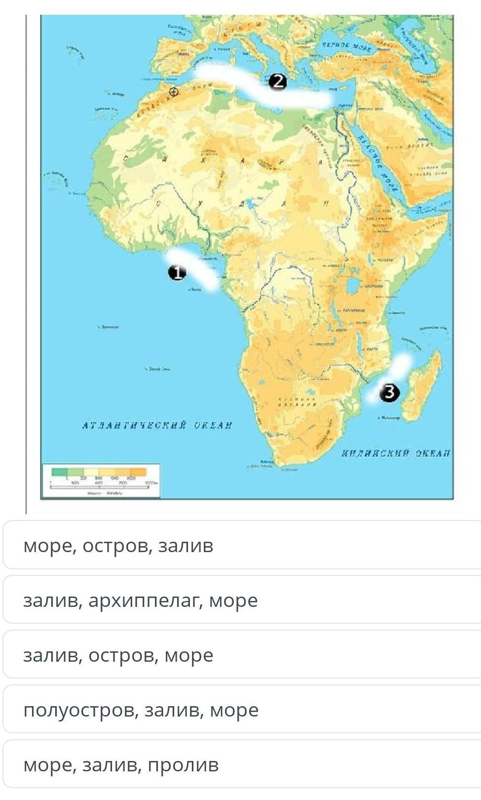 . Укажите правильный ряд слов, определяющие географические объекты на карте. Африки