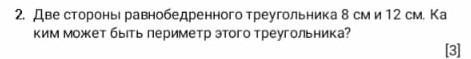 Две стороны равнобедренного треугольника 8 см и 12 см. Каким может быть периметр этого треугольника?