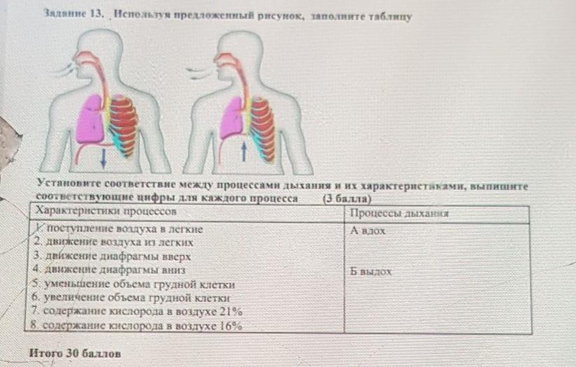 Установите соответствие между процессами дыхания и их характеристиками, вы пишите