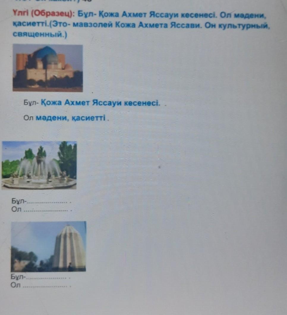 Tarif (образец): Бүn- Қожа Ахмет Яссауи кесенесі. Ол мәдени,