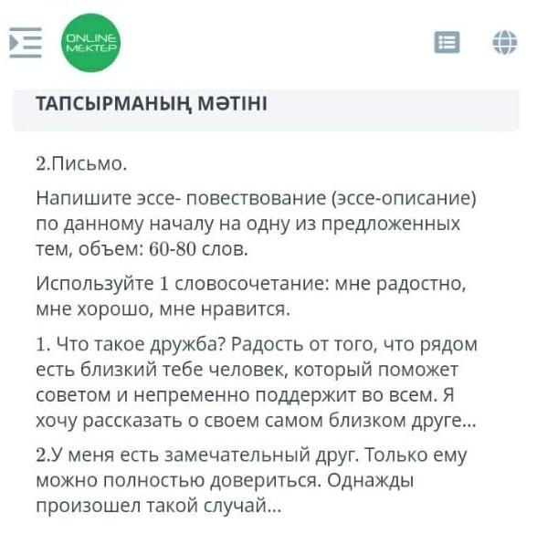 У меня есть лучший(ая) друг(подруга) (имя). Его зовут Дина. Он(а) мне поможет в трудную минуту. Мы с ним дружем 5 лет (сколько дружете).