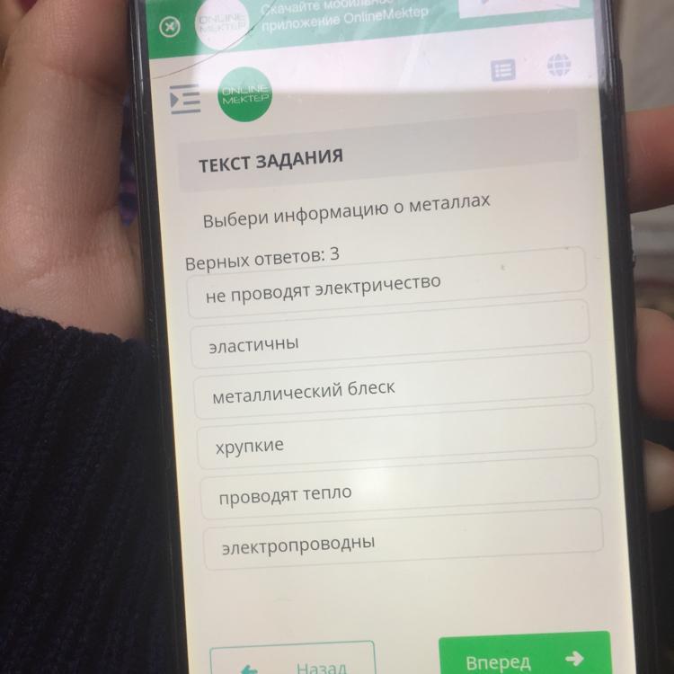 Ответ: элостичны, металический блеск,электропроводны