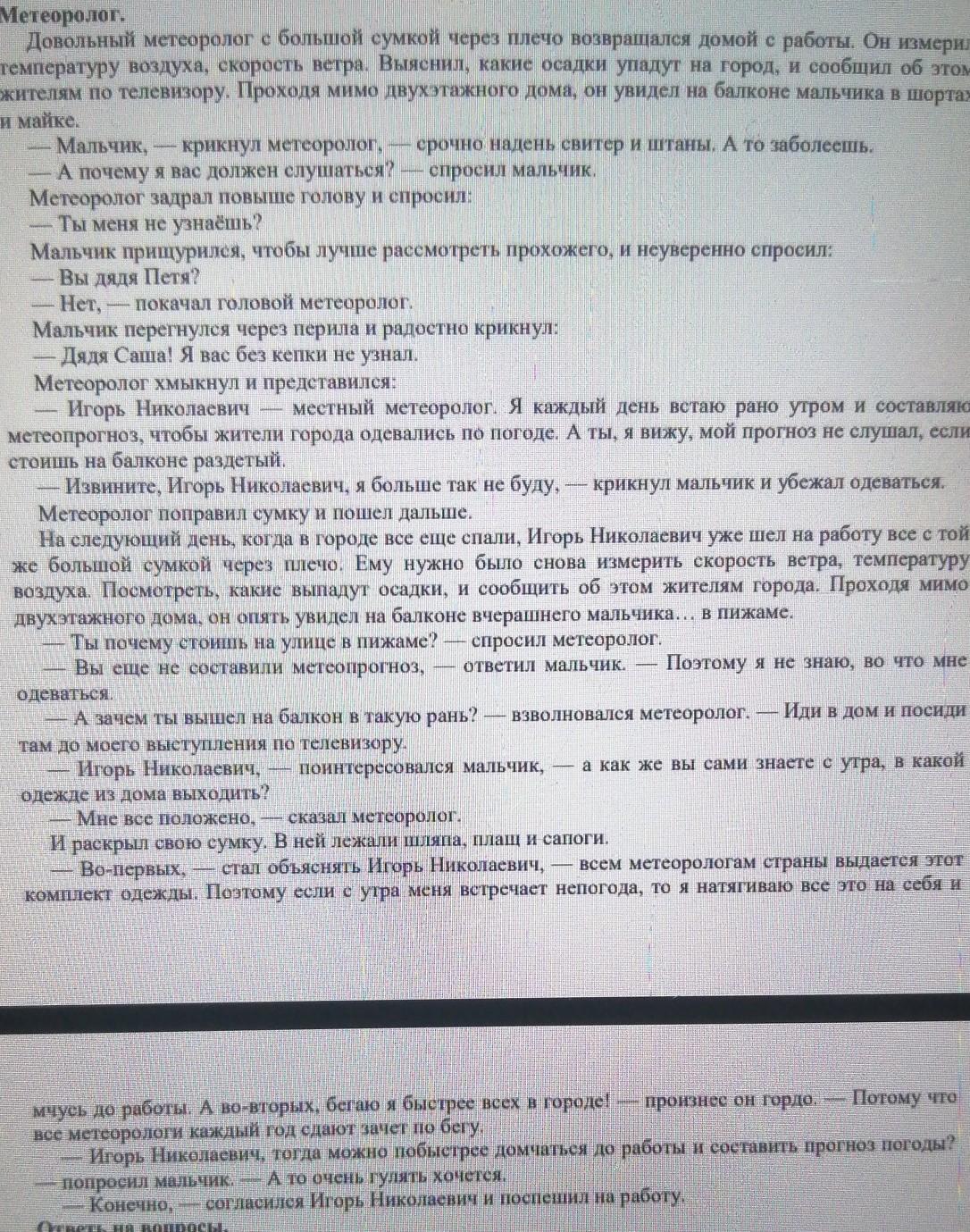 3.Во что был одет мальчик, когда на следующее утро его встретил метеоролог?