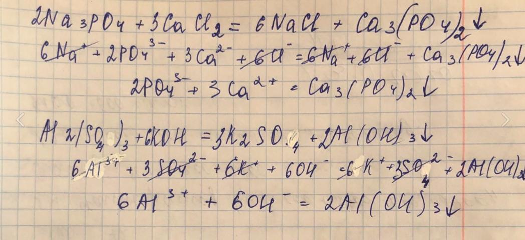 Ответ:Фосфат кальция и гидроксид алюминия не расписываем на ионы, так как они не растворимы в воде . Это осадки