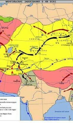 Задание 3 Опираясь на карту монгольских завоеваний, определите завоеванные территории