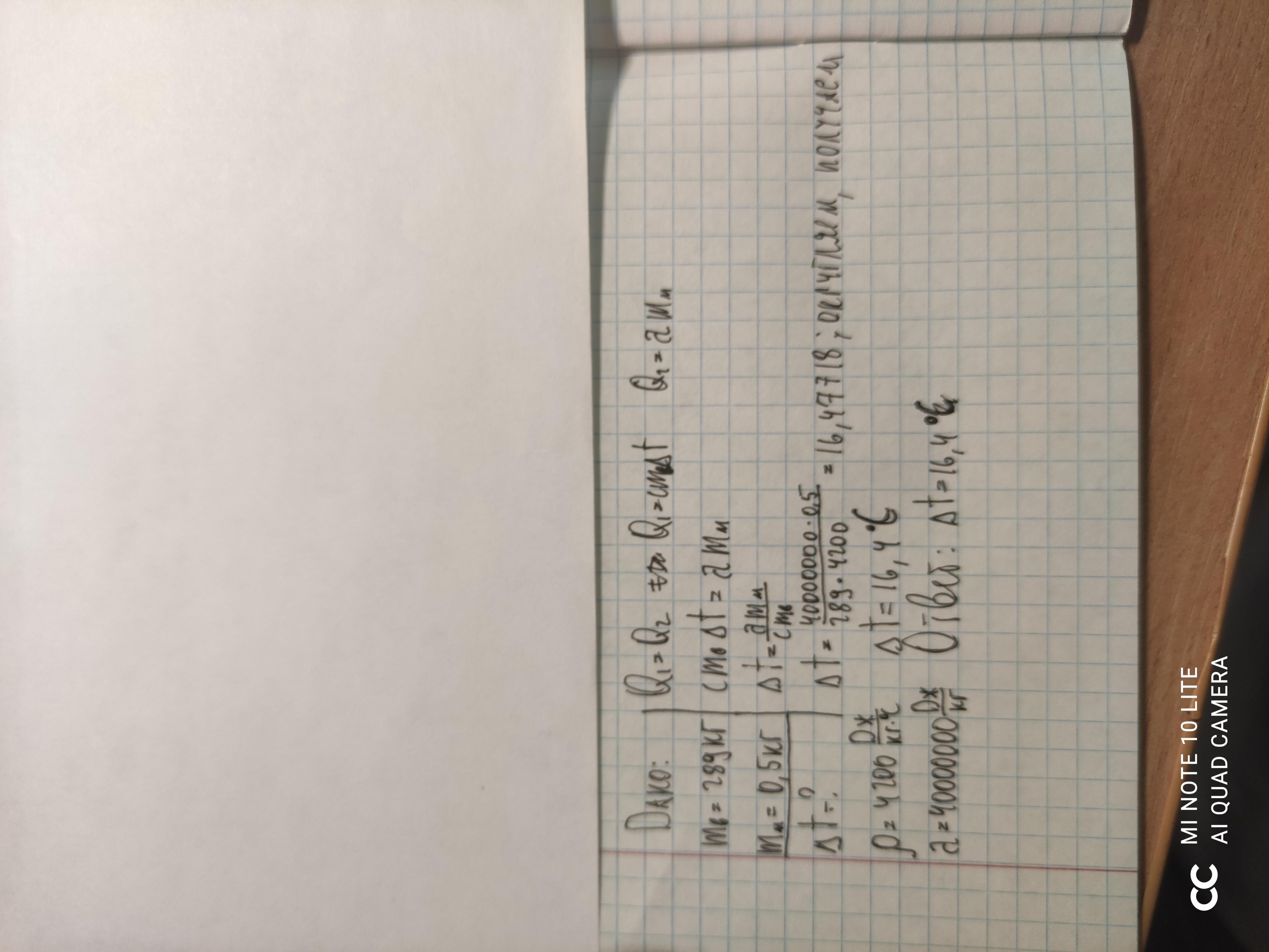 Определи, на сколько градусов можно нагреть воду массой 289 кг при сжигании мазута массой 0,5 кг, если считать, что теплота, выделившаяся при полном сгорании мазута, целиком пошла на нагревание воды. Удельная теплоёмкость воды равна 4200 Дж/(кг·°С), удельная теплота сгорания мазута — 40 МДж/кг.