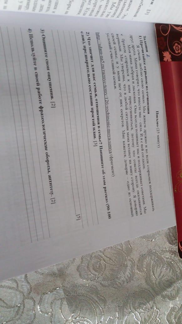 1)Прочитайте отрывок из сочинения Я очень люблю свою семью.Мы живём дружно и во всем стараемся поддерживать друг друга... 2)Что значит для вас семья, отношения в семье? Напиши об этом рассказ (90-100 слов), предварительно составив простой план. 3)Опишите свои ощущения. 4)Используйте в своей работе фразеологические обороты, антитезу.6 класс