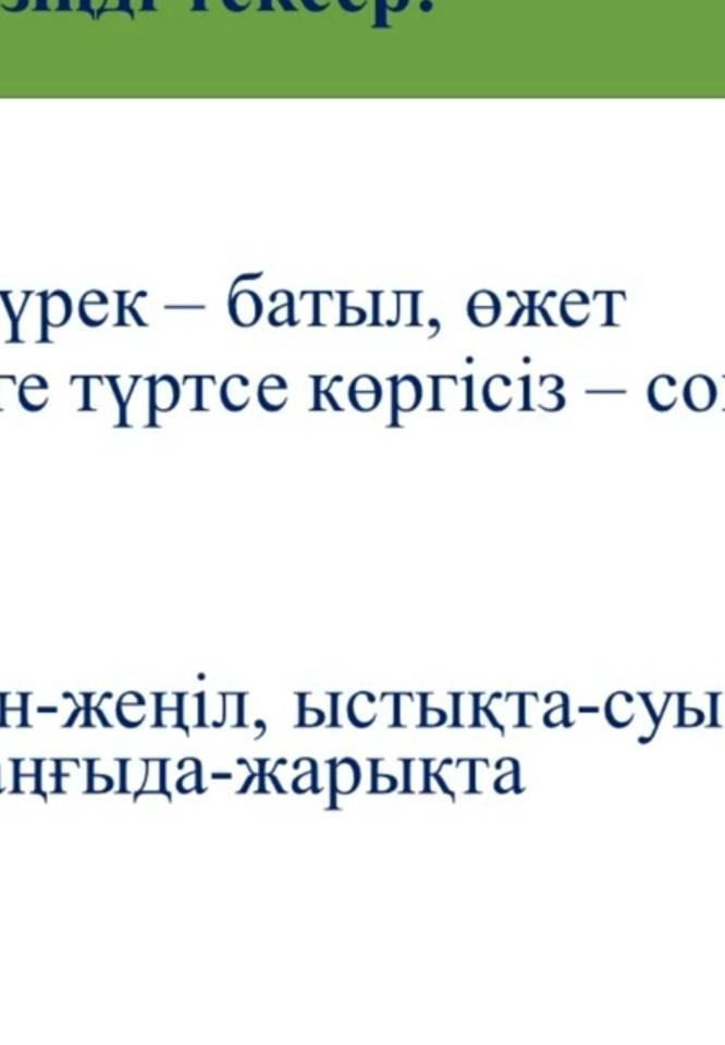 синонимін, бес создің антонимін тауып жазыңдар