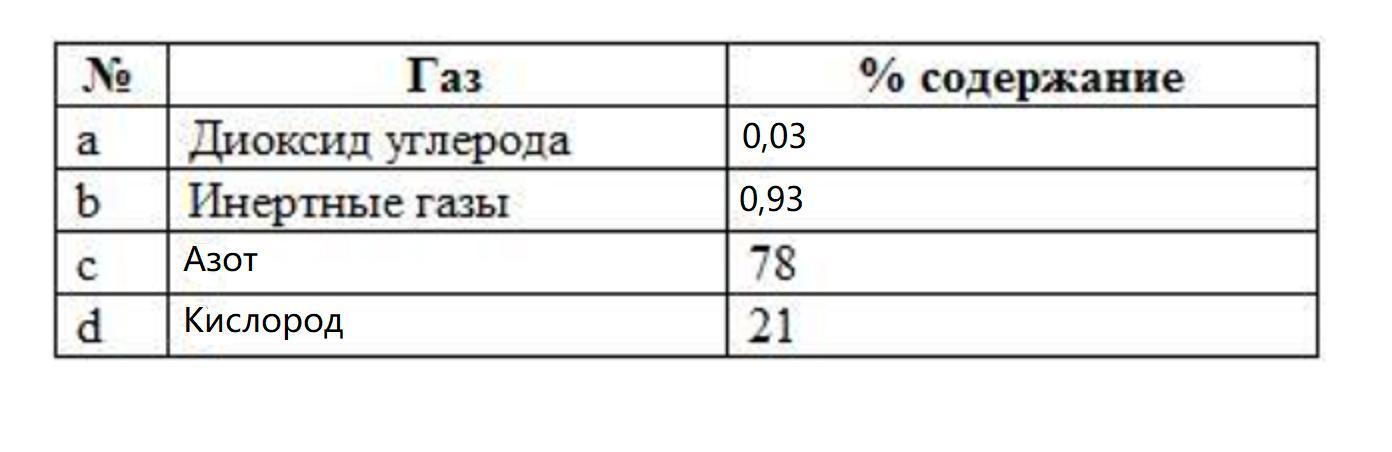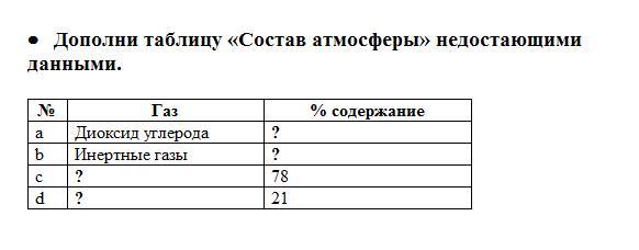 Дополни таблицу «Состав атмосферы» недостающими данными.