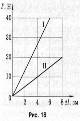 7.На графиках показана зависимость силы упругости от деформации для двух разных пружин.