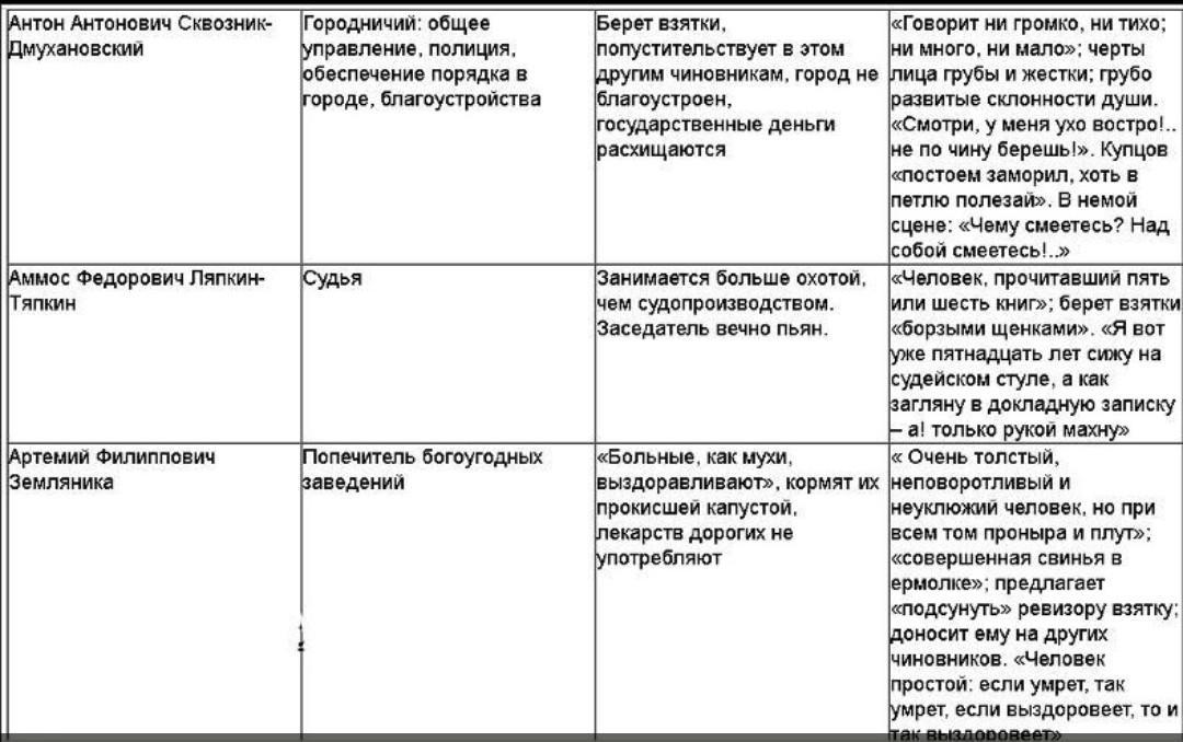 Подберите из 1-го и 4-го действий ключевые цитаты, показывающие отношение персонажа к службе и беспорядки в его ведомстве. Сделайте вывод об общем портрете чиновников.