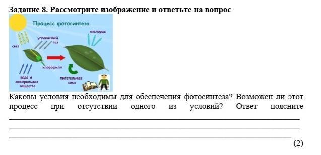 Каковы условия необходимы для обеспечения фотосинтеза? Возможен ли этот процесс при отсутствии одного из условий? Ответ поясните _____________________________________________________________________________________________________________________________________________________________________________________________________________