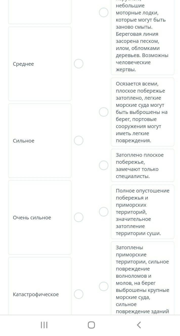 Осязается всеми, плоское побережье затоплено, легкие морские суда могут быть выброшены на берег, портовые сооружения могут иметь легкие повреждения.