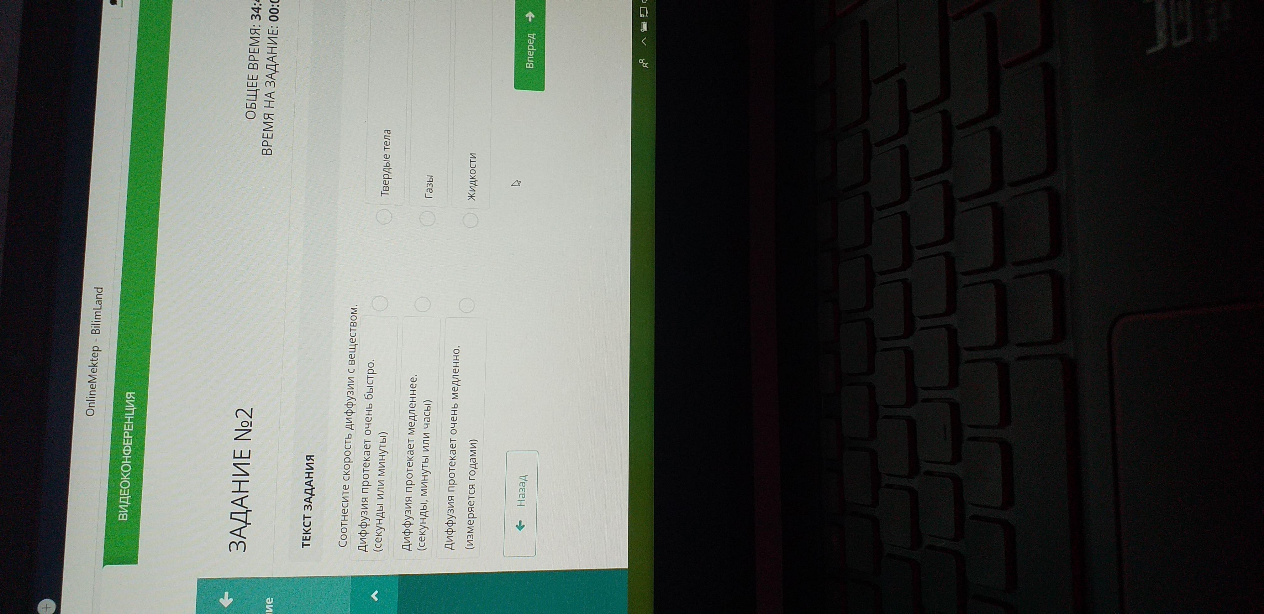 Диффузия в газах происходит быстрее всего, она занимает всего несколько секунд или минут. Диффузия в жидкостях может занимать от нескольких минут до нескольких часов. Диффузия в твердых телах протекает с течением нескольких лет.