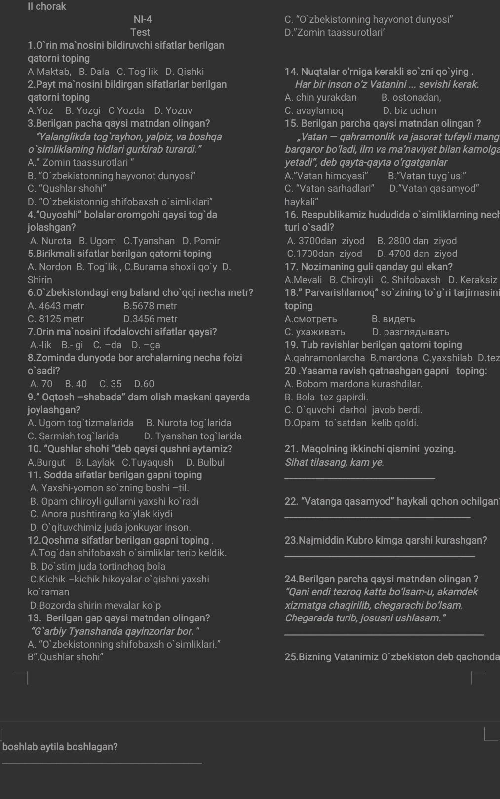 25-1428-yilda Abulxayrxon hozirgi Qo'zog'iston hududida "O'zbek ulusi" degan davlat tuzgan. Tarjima qiladigan bo'lsak O'zbekiston so'ziga to'g'ri keladi.Shundan boshlab O'zbekiston degan nom deb atala boshlagan!