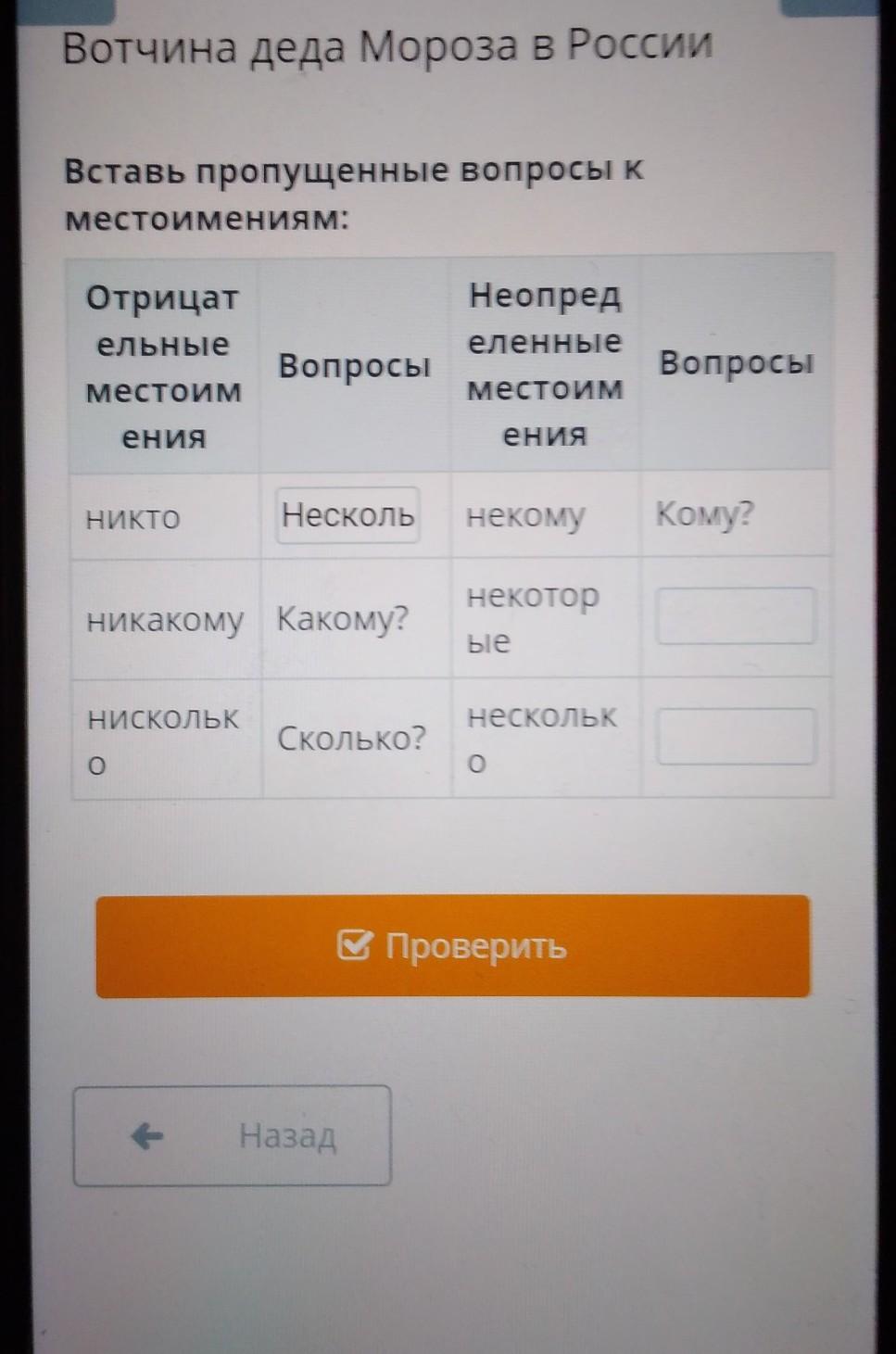 Вставь пропущенные вопросы к местоимениям отрицательные местоимения никто никому несколько вопросы несколько никому сколько неопределённые местоимения никому некоторые несколько вопросов кому