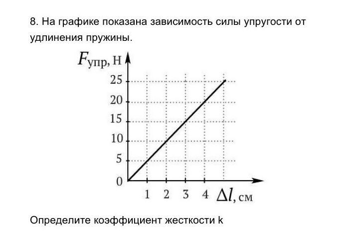 8. На графике показана зависимость силы упругости от удлинения пружины.