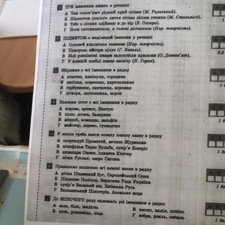 1А 2Г 3 А 4Б 5В 6В 7 я не знаю