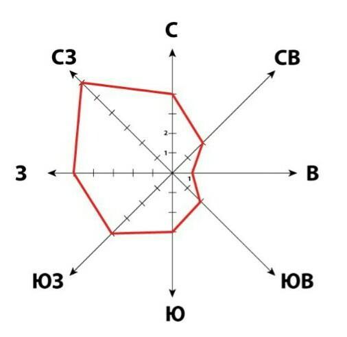 . По графику «Роза ветров» г. Костанай за февраль 2018 г определите направление и количество дней преобладающего ветра.