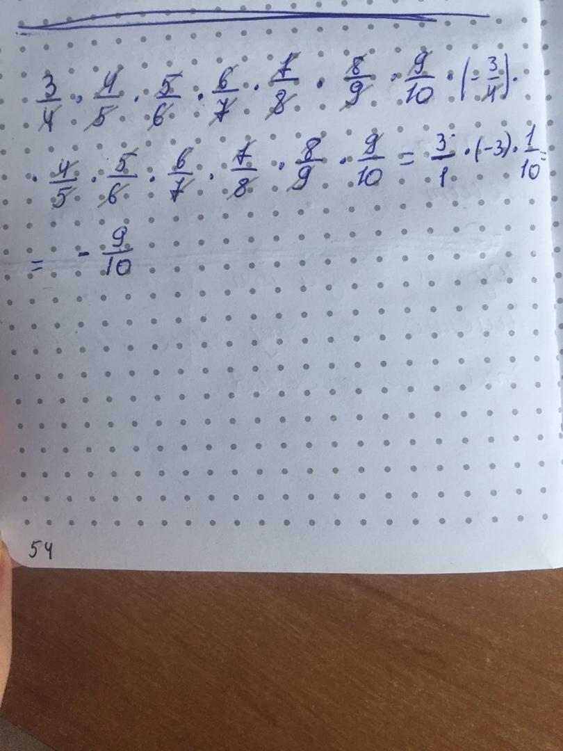Выполните умножение:3/4*4/5*5/6*6/7*7/8*8/9*9/10*-3/4*4/5*5/6*6/7*7/8*8/9*9/10*