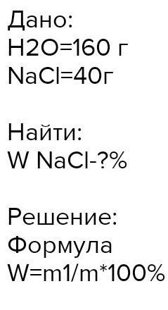Для приготовления раствора взяли 40г соли и 160г воды. Определите массовую долю соли в приготовленном растворе. (напишите решение задачи, не забудьте написать ответ)