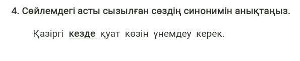 Сөйлемдегі асты сызылған сөздің синонимін анықтаңыз.