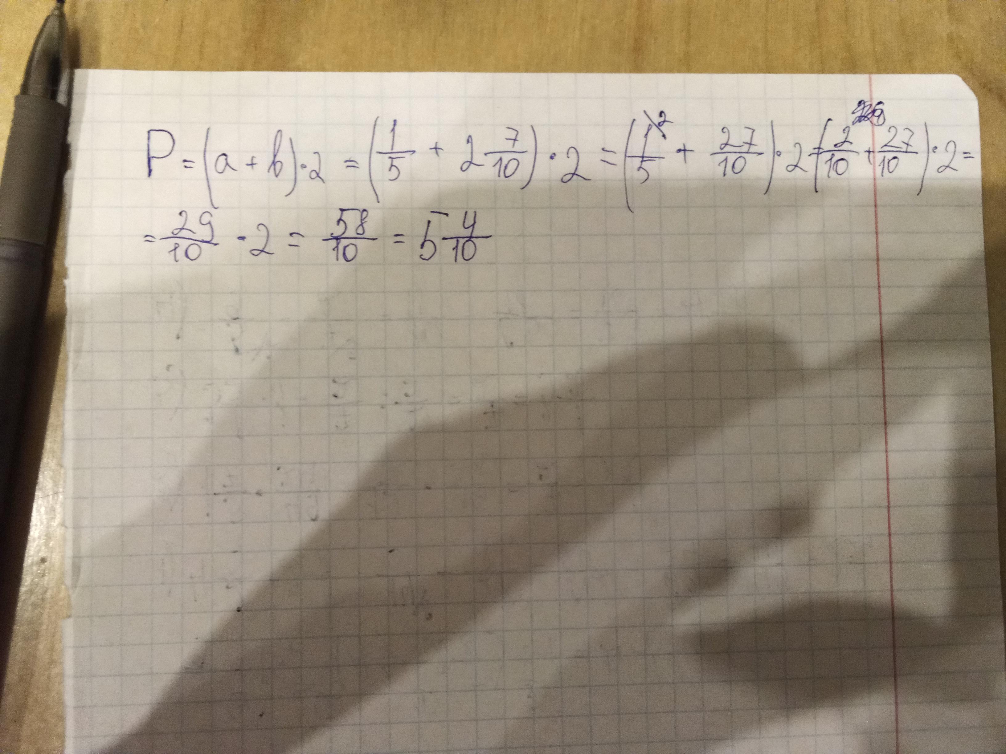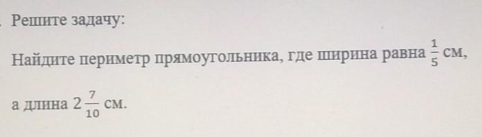 Найдите периметр прямоугольника, где ширина равна 1/5 см, а длина 2 7/10 см.