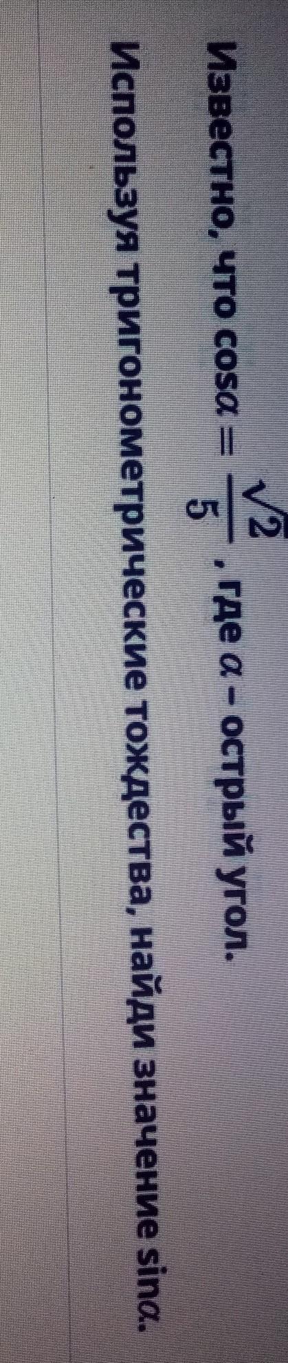 sinα = (1 - 2/25)^0.5 = (23/25)^0.5 = 0.96