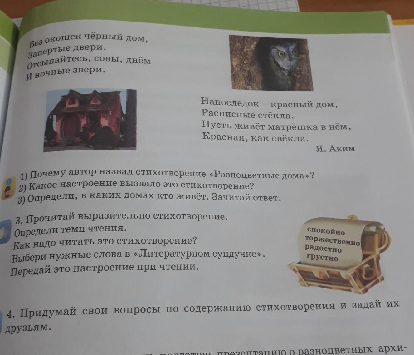 3 . В чёрном доме живут звери и сова. В красном доме живёт красная матрёшка.