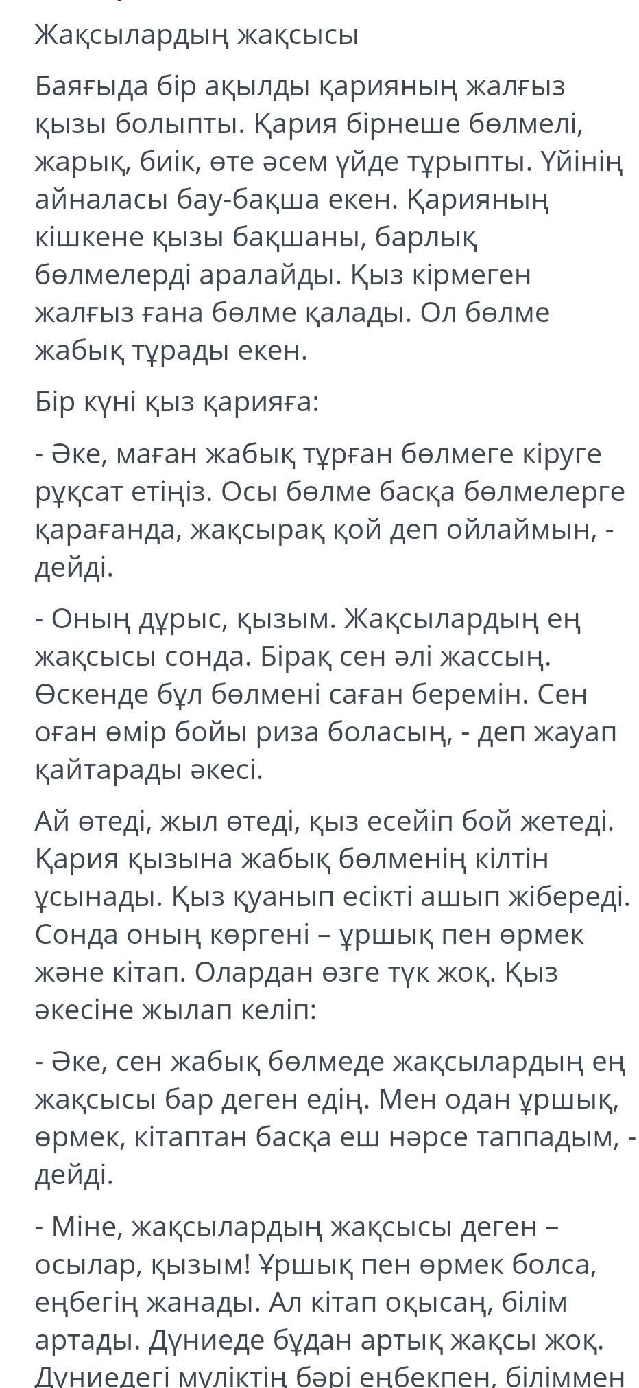 Төмендегі сұрақтарға мәтін бойынша бір сөйлеммен жауап беріңіз . А ) Қария ұршық пен өрмекті не үшін « жақсыларға » жатқызды ? В ) Қария қызына кітаптың маңызын не деп түсіндірді