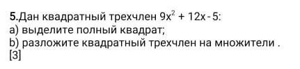 1. 9х^2+12х-5=(3х)^2+2×2×3х+4-4-5=