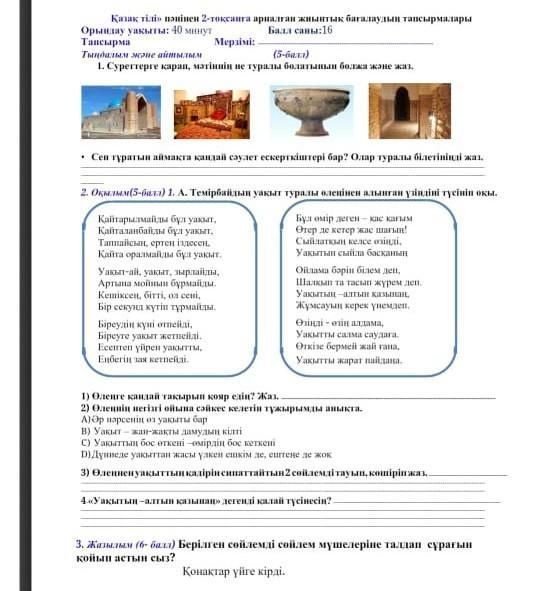 Стихты жаттайсың. Ол 2 тапсырма. 3 тапсырма сураларга жауп бересын