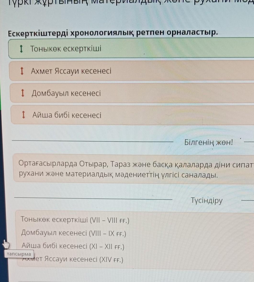 Ескерткіштерді хронологиялық ретпен орналастыр.