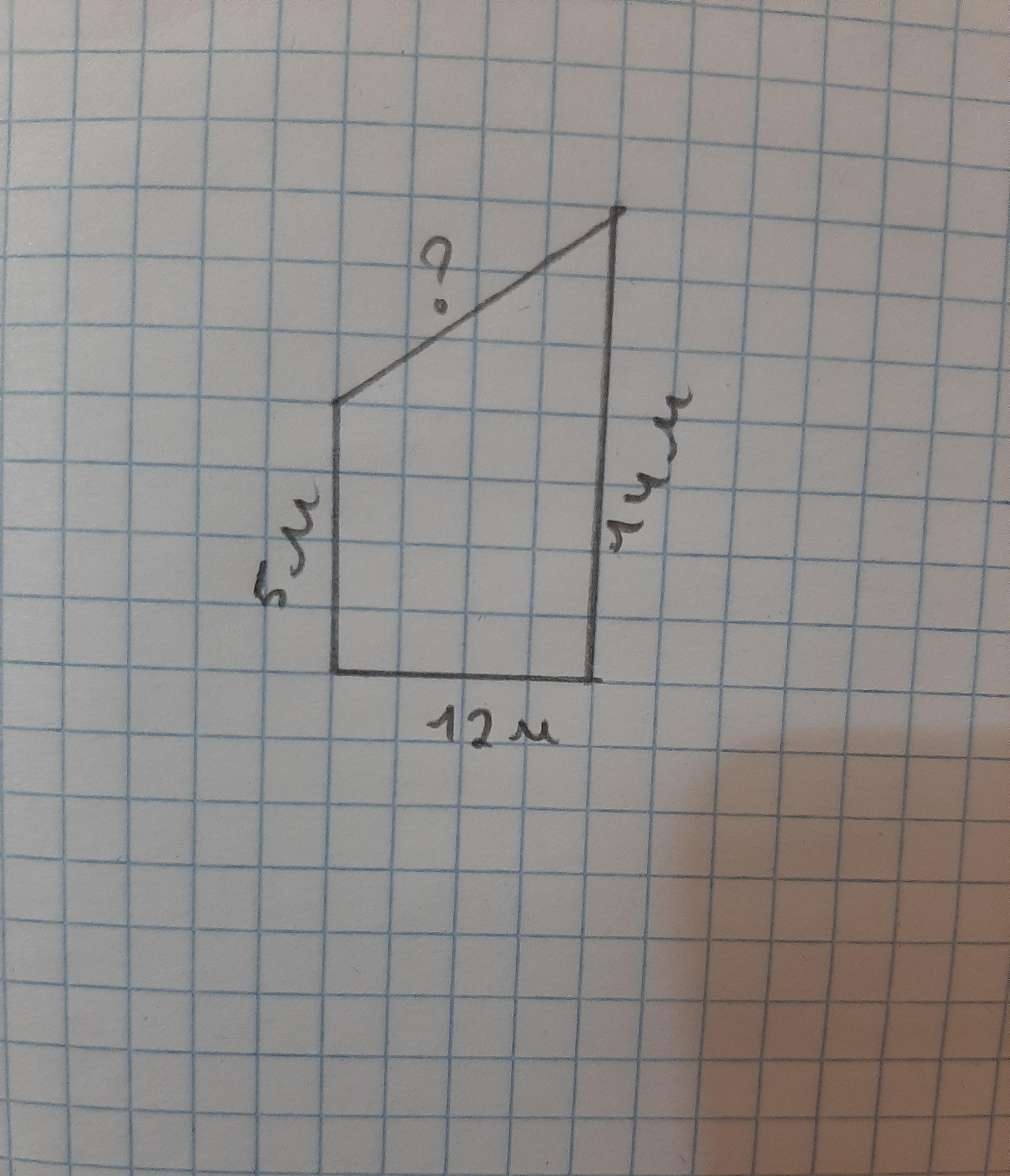 Ара қашықтығы 12 м-ге тең тік орнатылған екі бағанның жоғары ұштары көлденең білеумен қосылған. Бір бағанның биіктігі 5 м, ал екіншісі 14 м. Білеудің ұзындығын табыңыз.