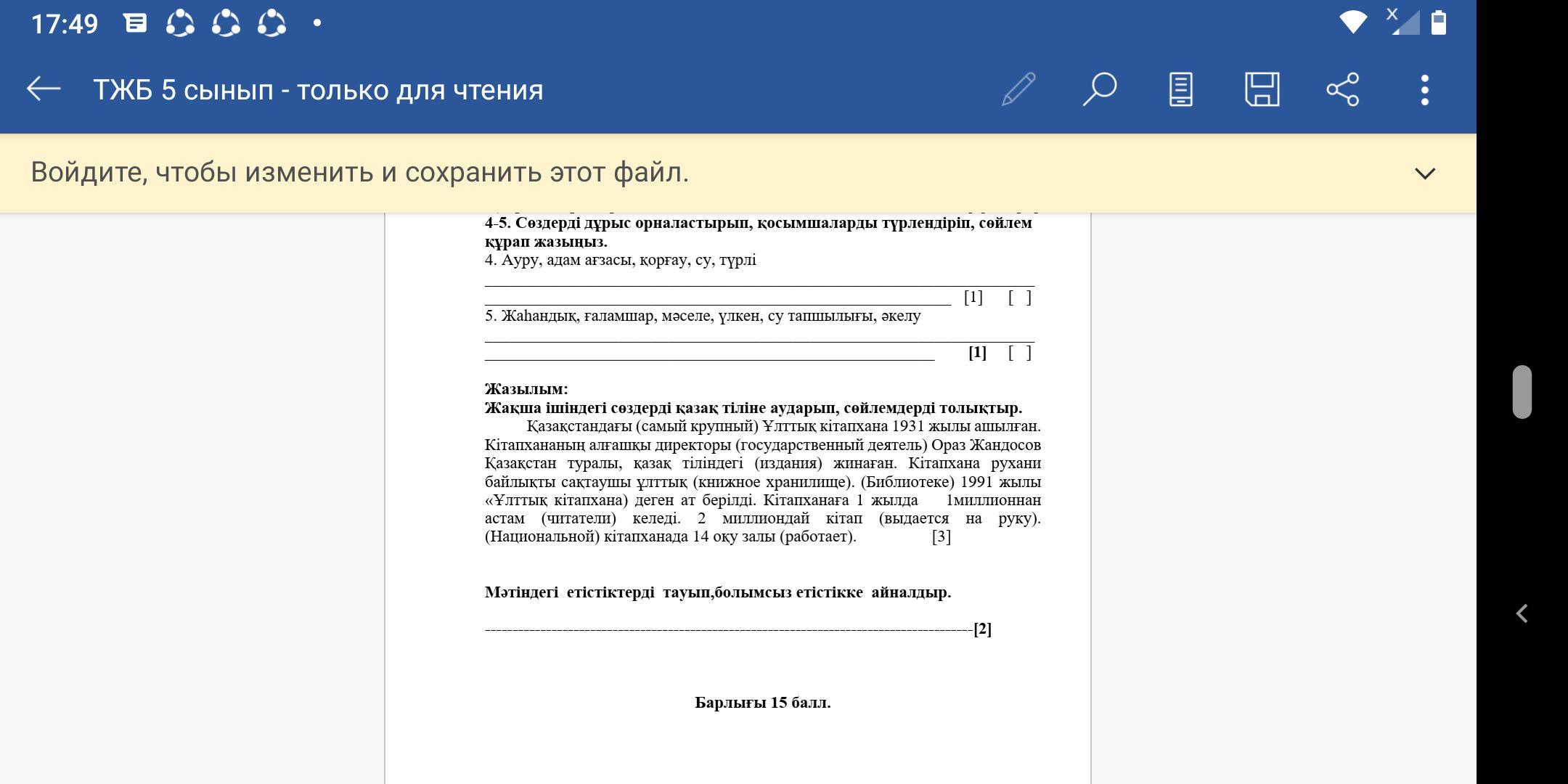 Жазылым: самый крупный - ең ірі, государственный деятель - мемлекеттік қайраткері, издание - басылым, книжное хранилище - кітап қоймасы, Библиотека - кітапхана, читатели - оқырмандар, выдается на руки - қолға беріледі, Национальной - Ұлттық, работает - жұмыс істейді.