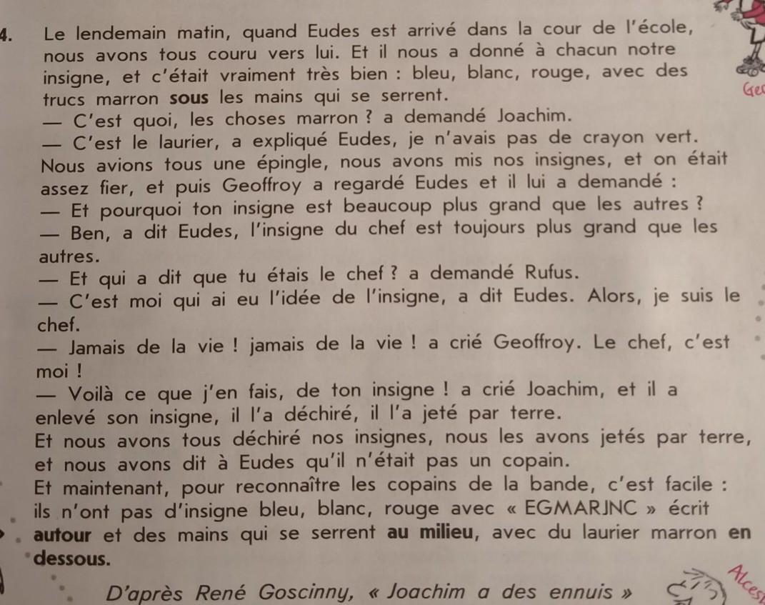Passe compose - est arrive, nous avons couru, il a donne, a demande, a explique, nous avons mis, a regarde, a dit, ai eu, a crie, il a enleve, il a dechire, il a jete, nous avons dechire, nous les avons jetes, nous avons dit.