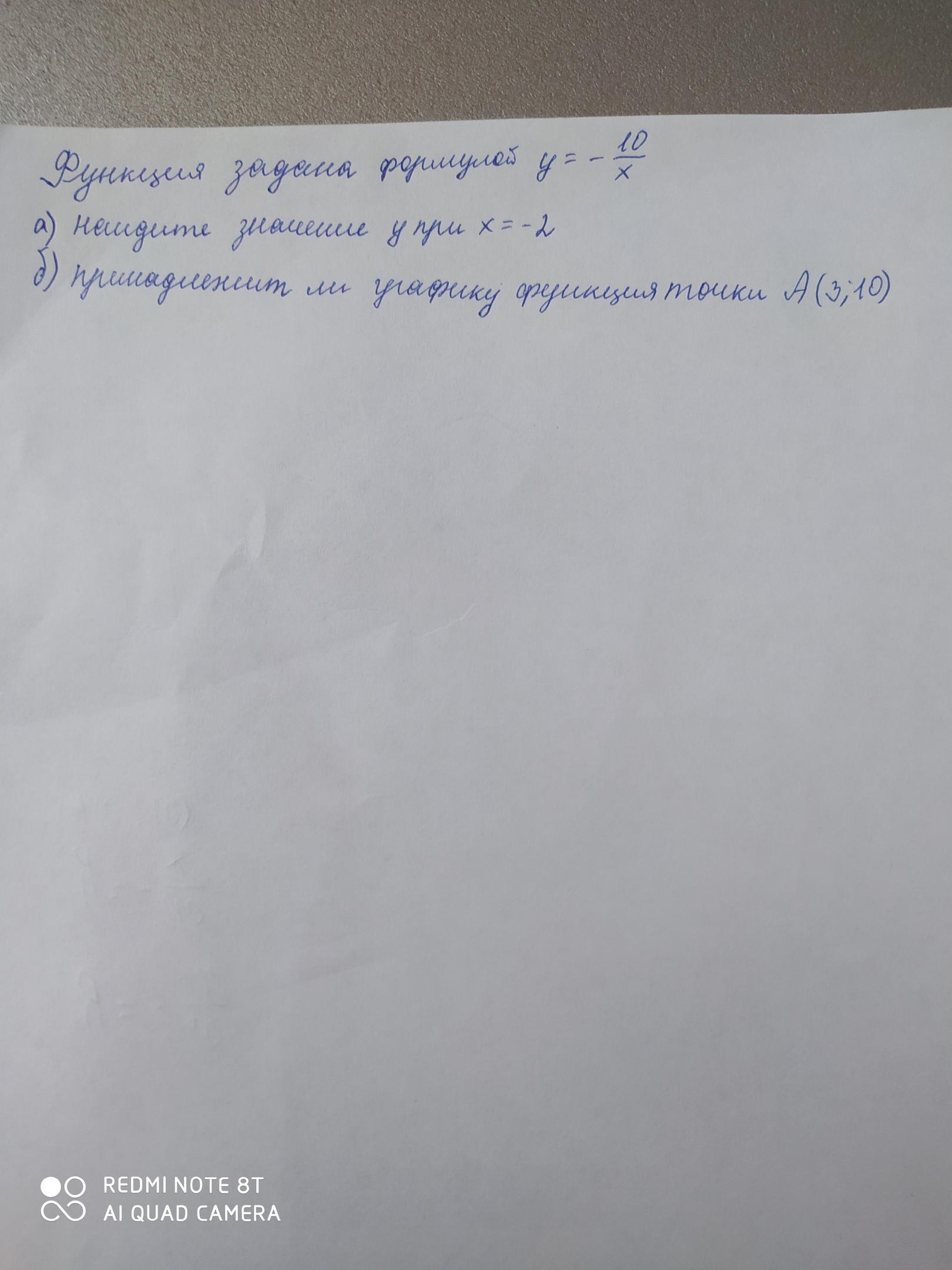 у(3) = -10/(3) = -3 1/3 , значит, А(3; 10) не принадлежит этой функции