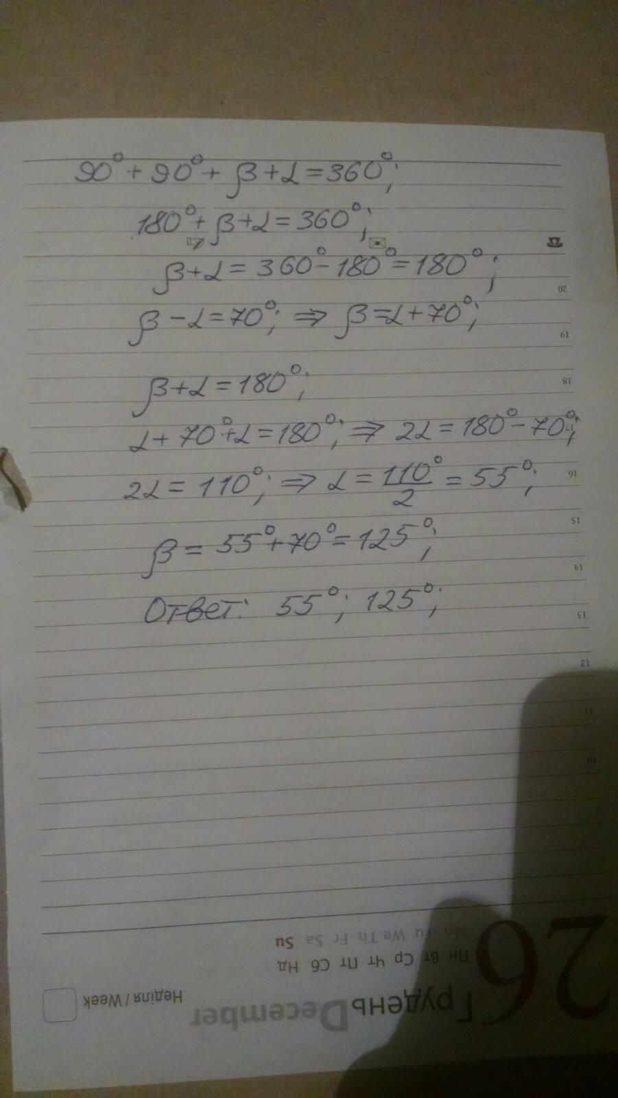 α+70°+α=180°; ⇒ 2α=180°-70°;