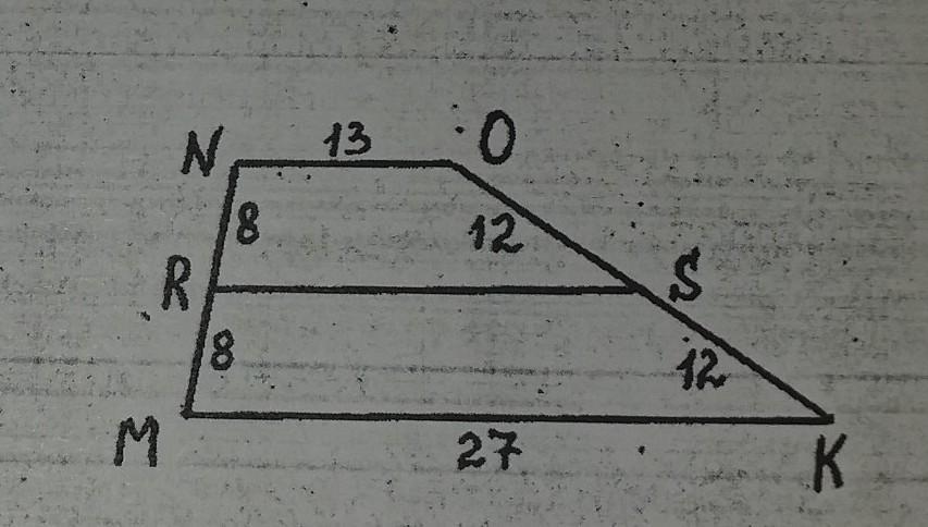 MNOK- трапеция. Найдите длину отрезка RS, используя данные рисунка. Помогите пожалуйста! Срочно нужно