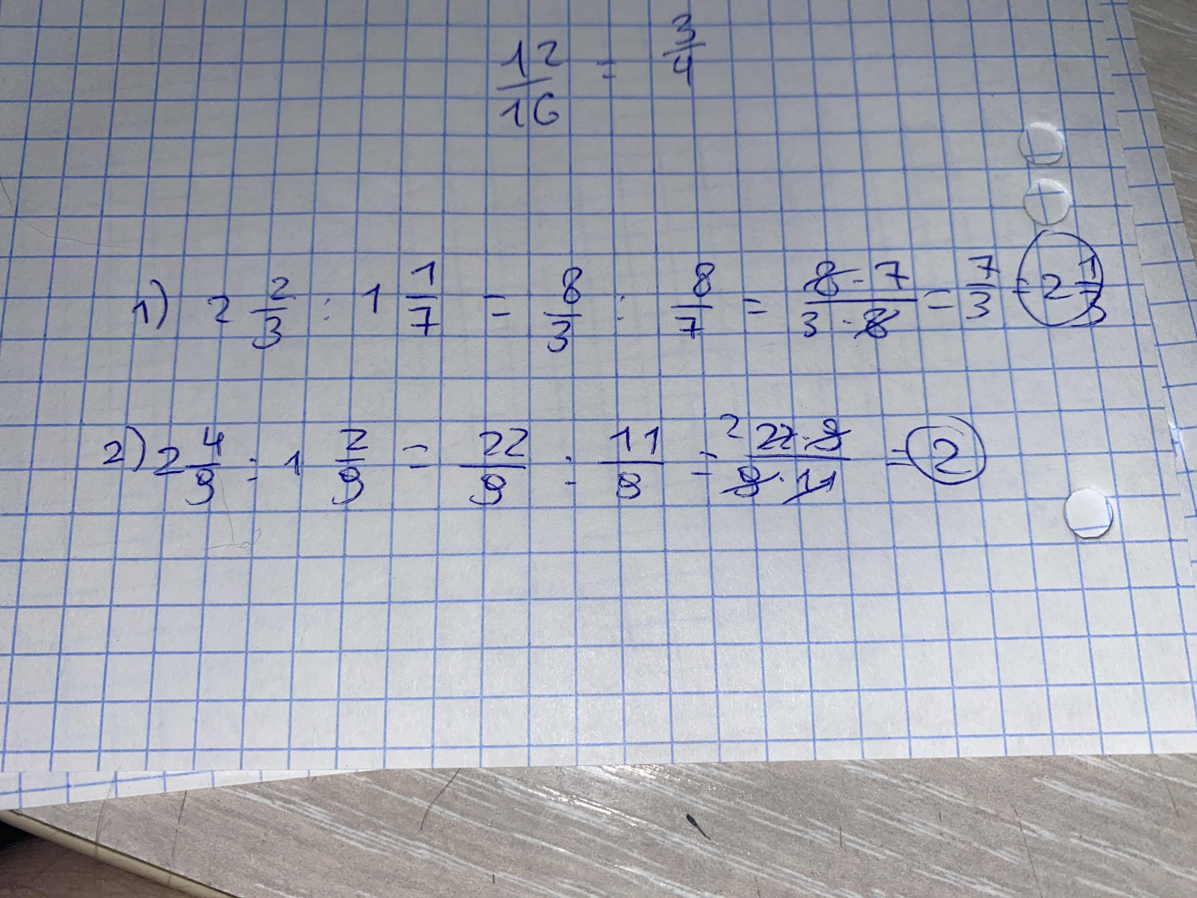 2 2/3:1 1/7 = 8/3:8/7=8/3*7/8 =56/24=2 1/3