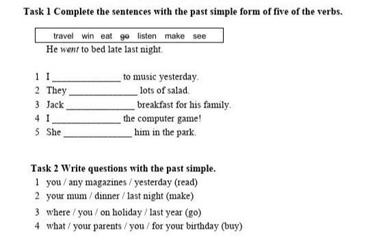 2) 1. Did you read any magazines yesterday?