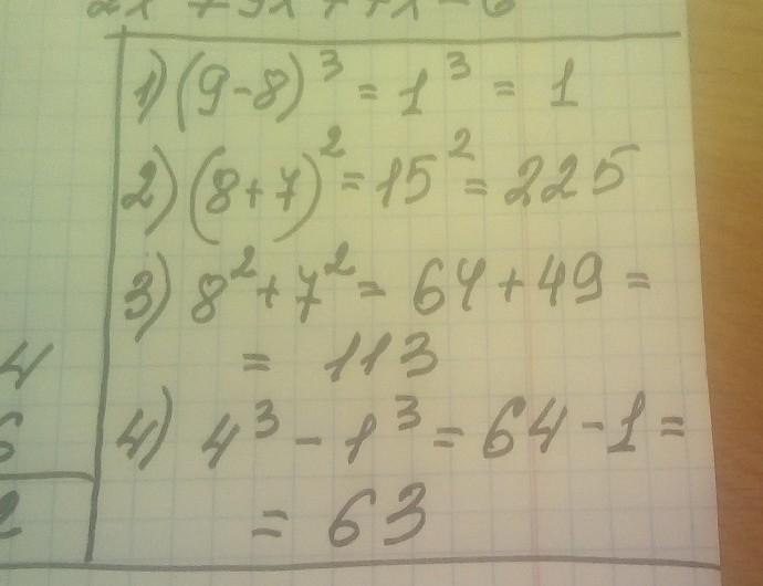 1) куб разности чисел 9 и 8;