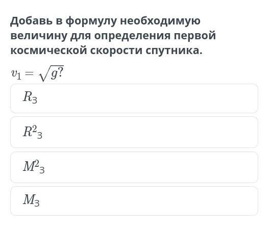 Добавь в формулу необходимую величину для определения первой космической скорости спутника