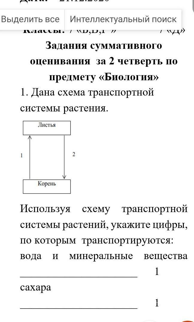 Вода и минеральные вещества по 1(впитывается из почвы с помощью корня)