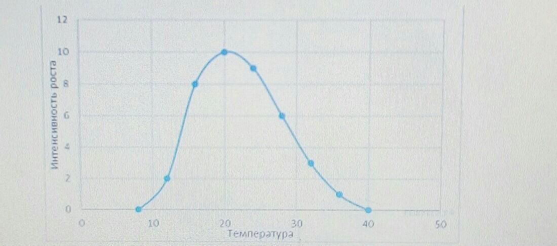 Ha рисунке изображен график зависимости интенсивности роста от температуры.